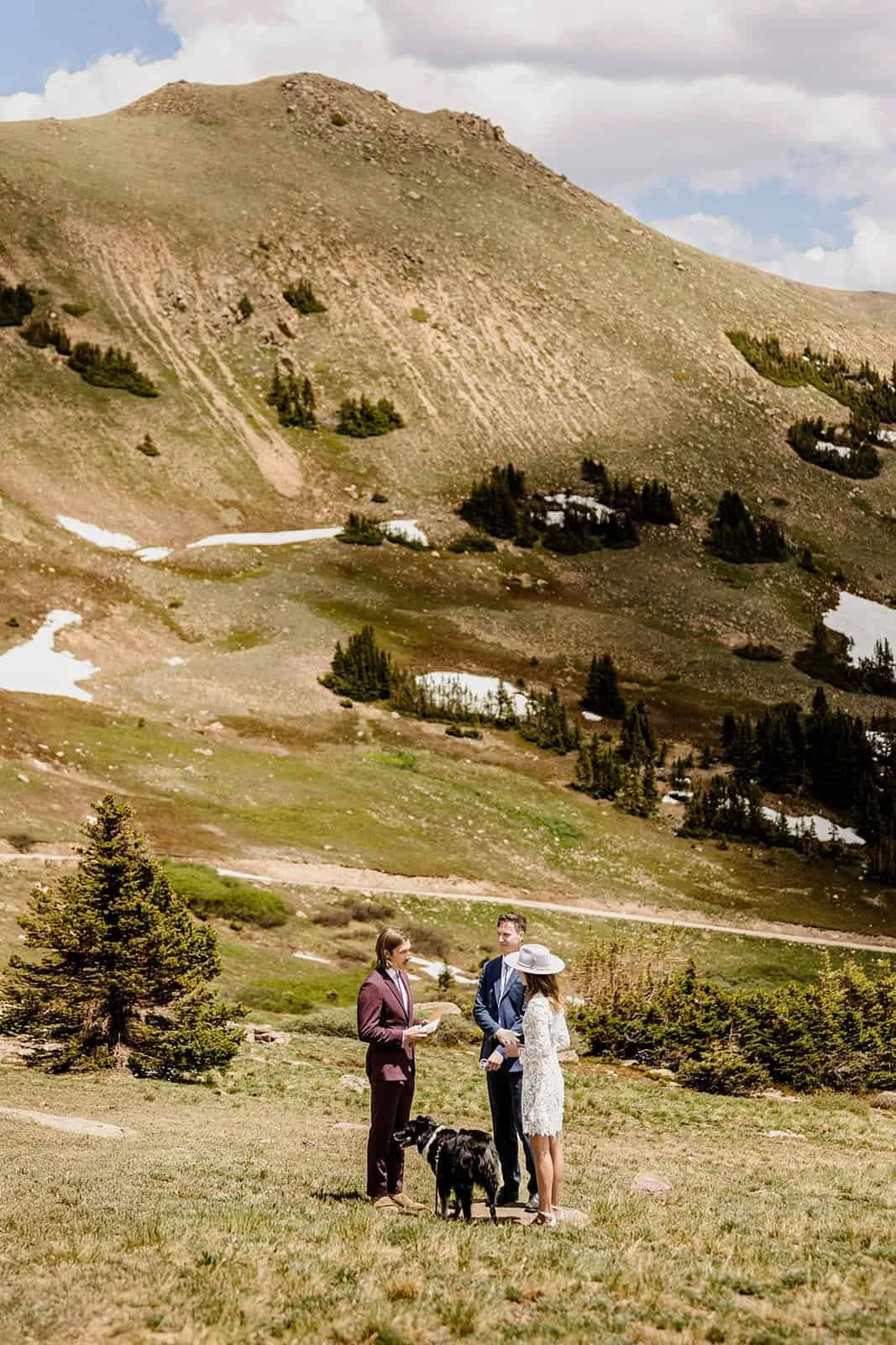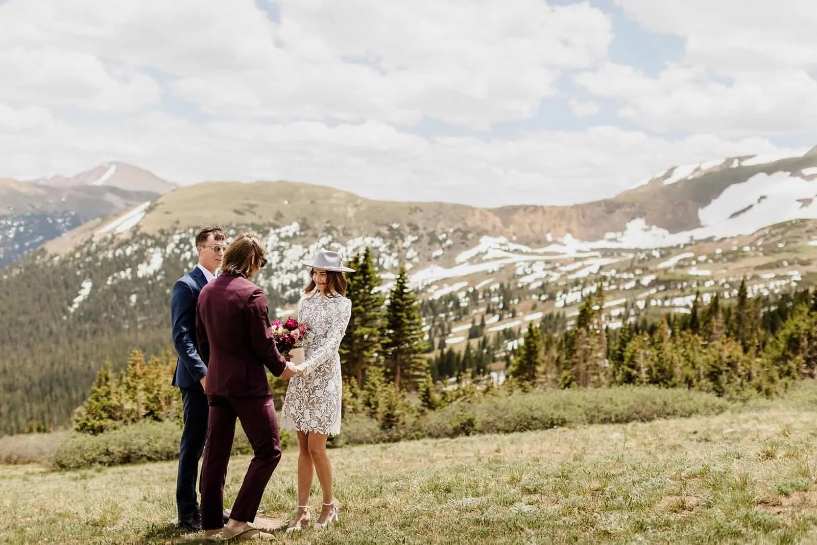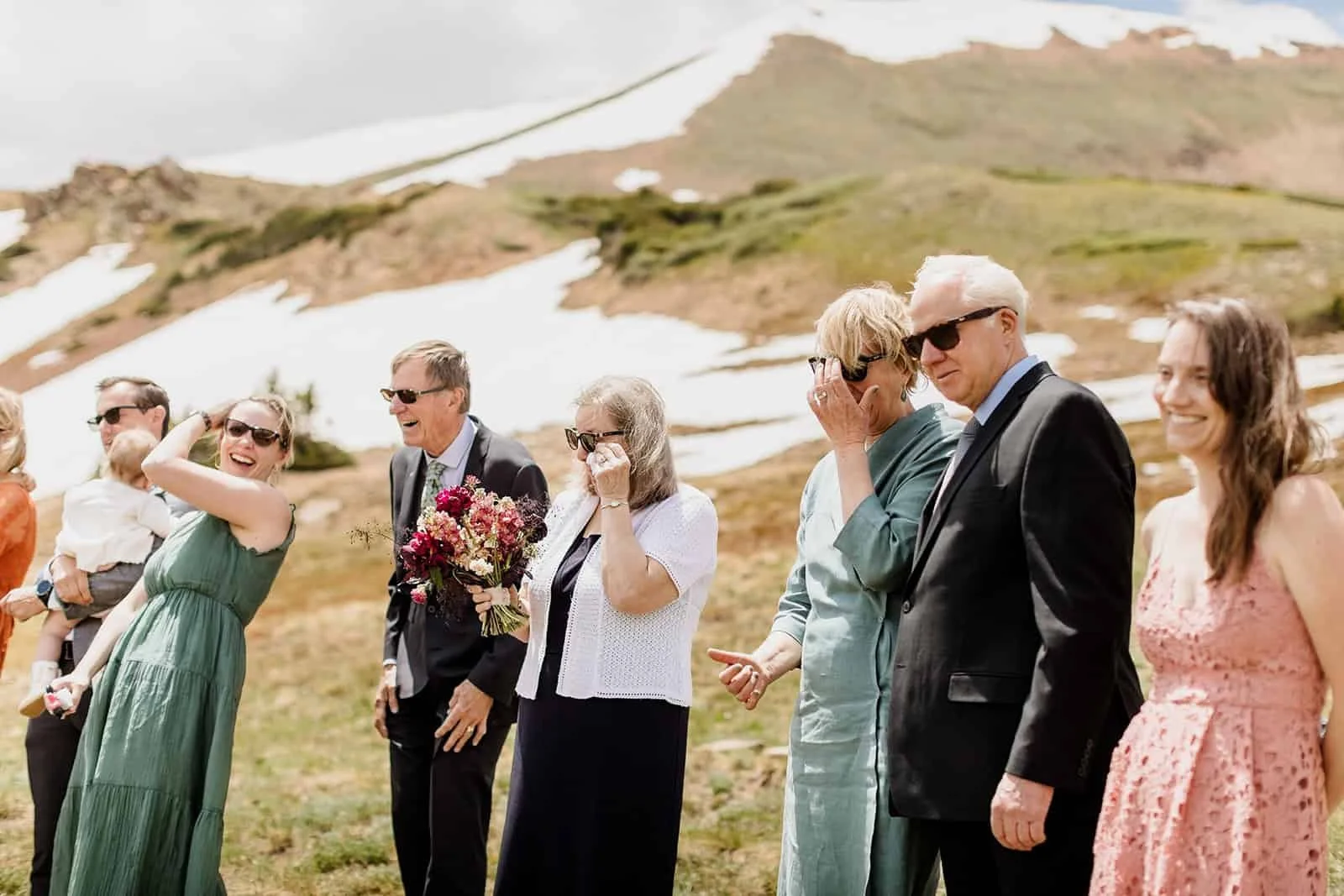 SO fast forward 10 months later! It’s June! We had a lot of snowpack in the winter! The road where they wanted to have their ceremony wasn’t open yet! Their elopement was just days away! Ironically I think the road ended up opening 5 days before their wedding day (STRESS) but because they had family, we ended up pivoting locations anyways and all for the better because they eloped at the most gorgeous overlook with their families in tow, on a Colorado bluebird day.