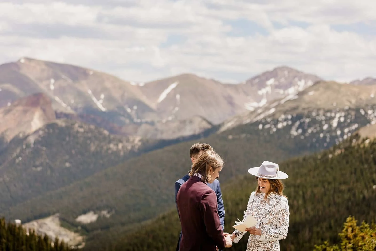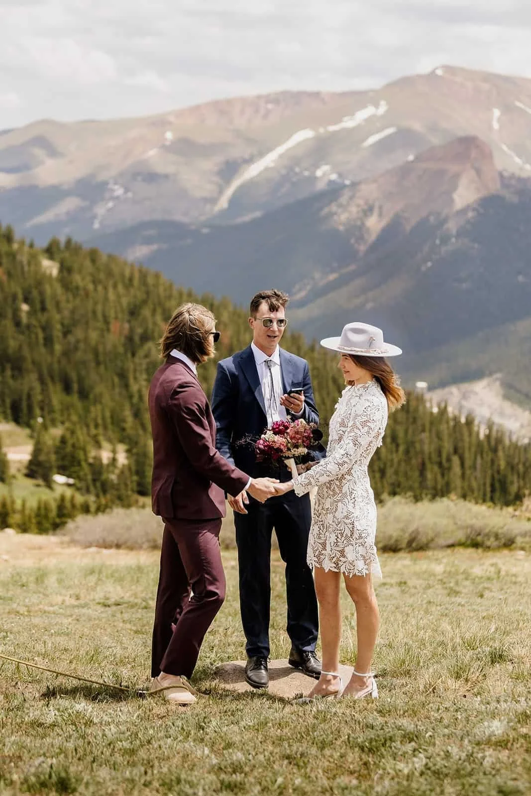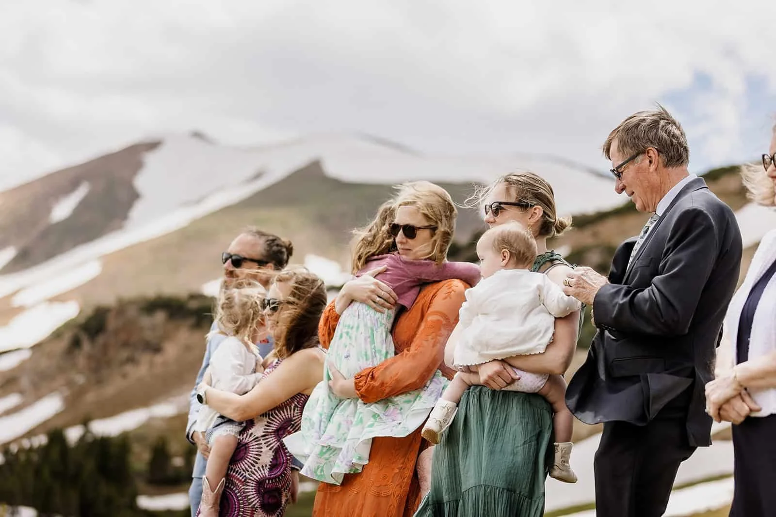 SO fast forward 10 months later! It’s June! We had a lot of snowpack in the winter! The road where they wanted to have their ceremony wasn’t open yet! Their elopement was just days away! Ironically I think the road ended up opening 5 days before their wedding day (STRESS) but because they had family, we ended up pivoting locations anyways and all for the better because they eloped at the most gorgeous overlook with their families in tow, on a Colorado bluebird day.