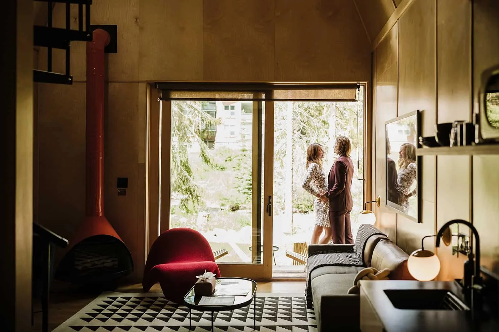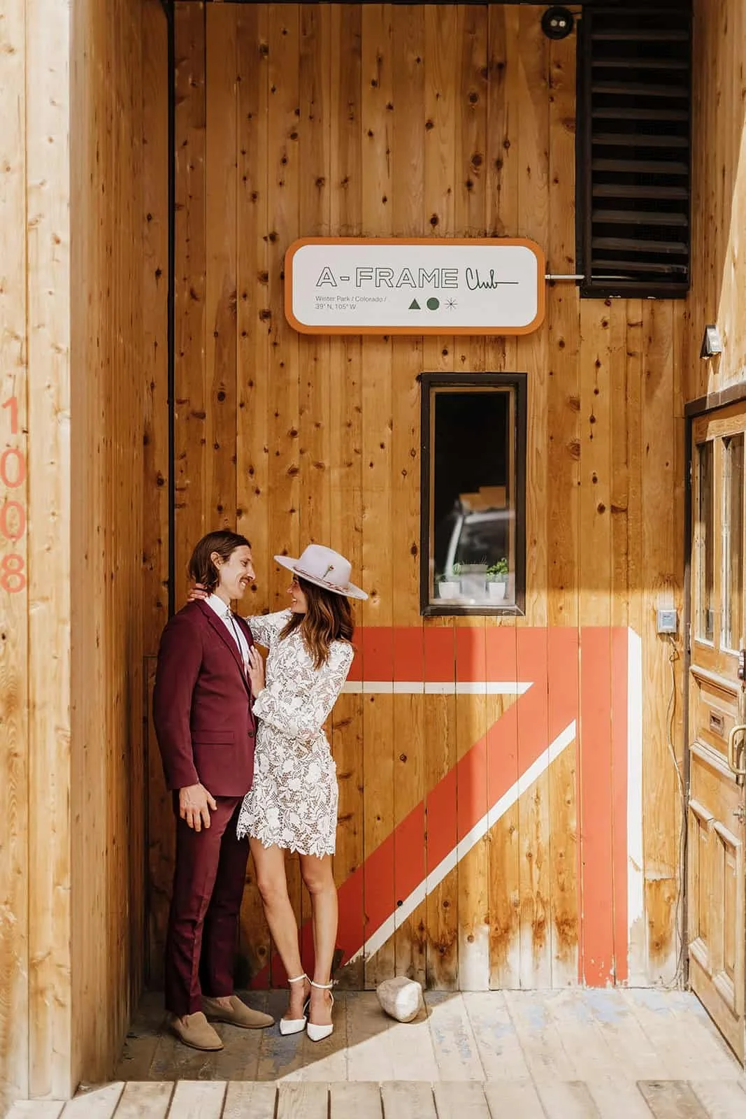One of the best places to stay is the relatively new A-Frame Club located at the base of the Winter Park Ski Resort. And yes, it’s just as cute as it sounds. It’s one of my favorite places to recommend to couples, dine at when I’m in town, and shoot at because the entire property is so photogenic and cute. You can’t go wrong with staying there! So when Kat + Steve wanted to stay at the A-Frame Club and elope in Winter Park, I knew it was gonna be a good time.