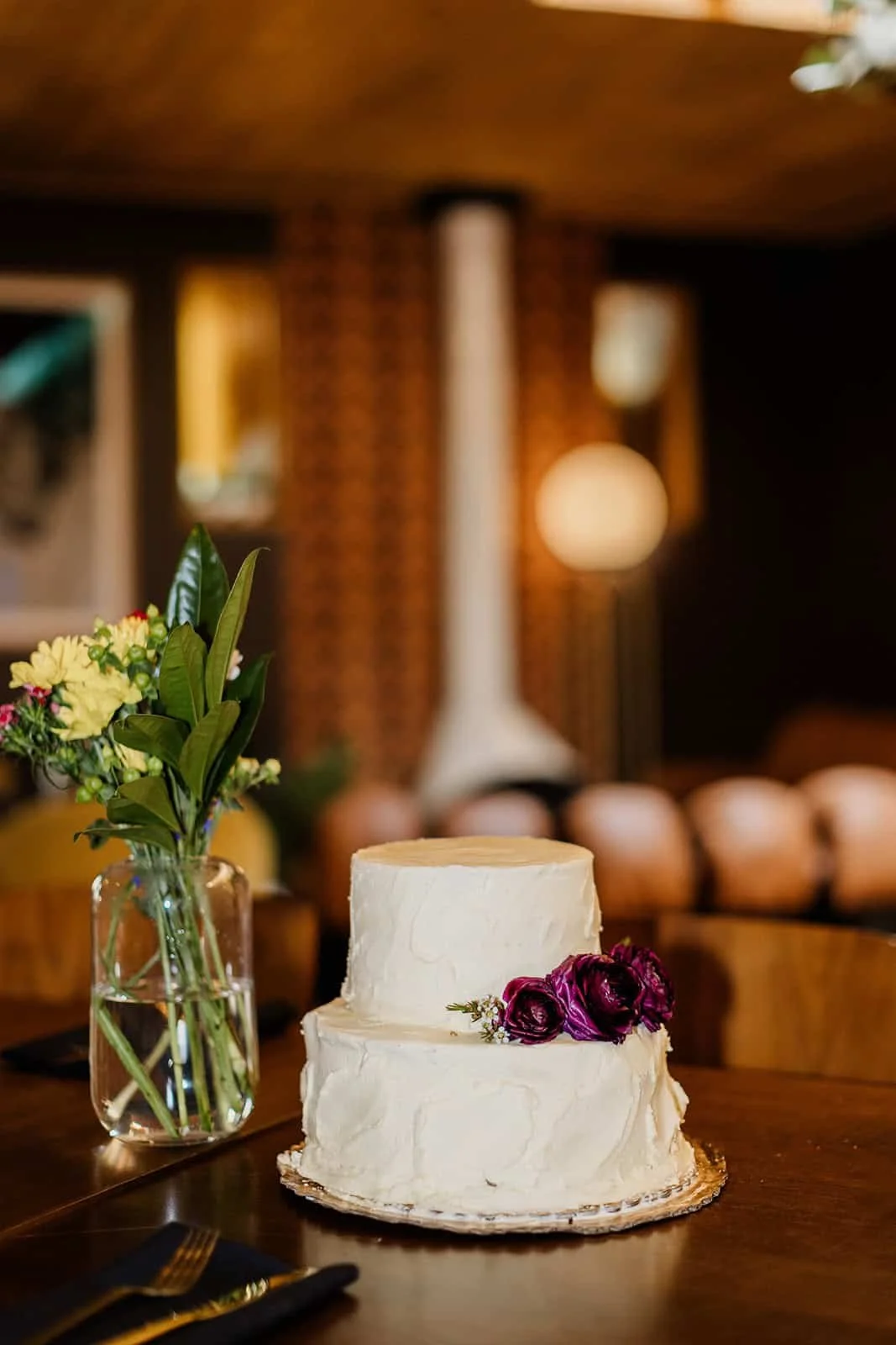 They followed up their intimate ceremony with photos at the A-Frame Club down in Winter Park where they shared some snacks with friends before they had a more traditional reception inside the Grill at the A-Frame Club, complete with the yummiest looking cake.